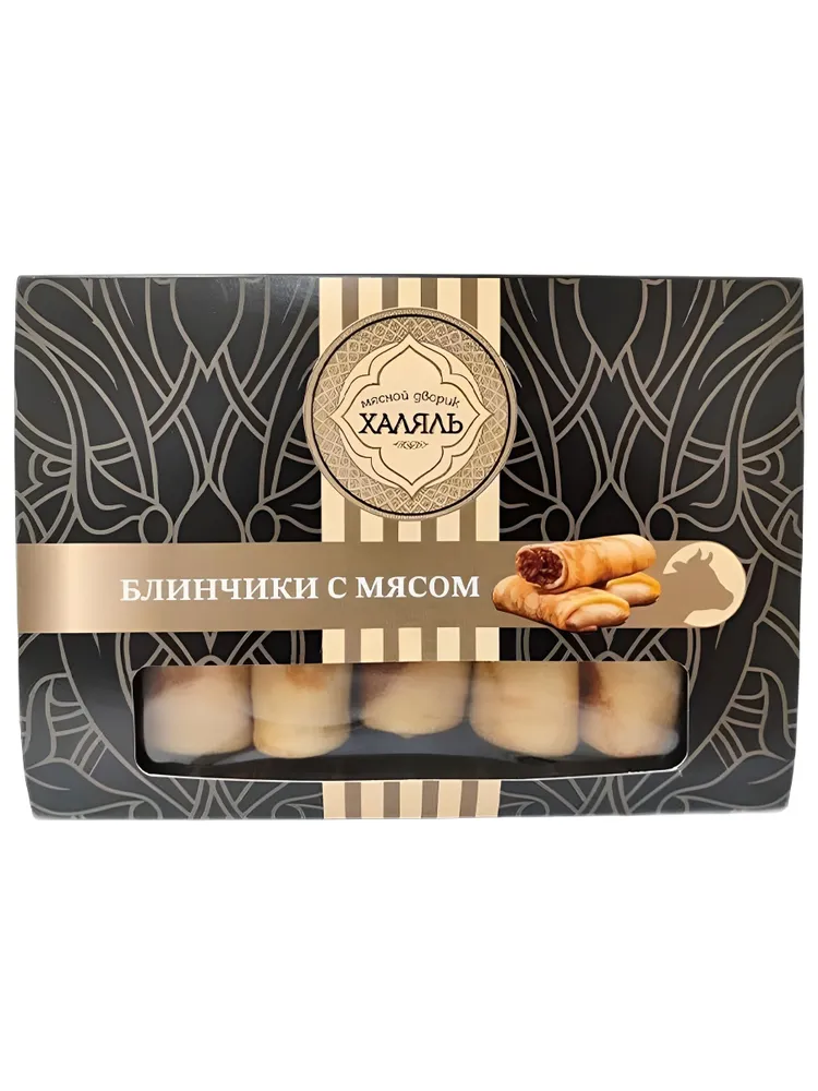 Блинчики с мясом от казанского производителя полуфабрикатов «MinDus» (МинДус) представляют собой замороженные изделия, соответствующие стандартам «халяль». Это сытный продукт с начинкой из говядины, предлагаемый в замороженном виде для быстрого приготовления.