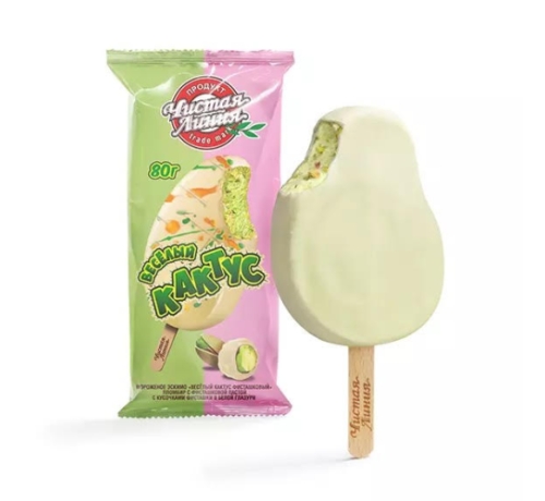 Состав пломбира: молоко коровье цельное, молоко цельное сгущенное с сахаром (молоко цельное, молоко обезжиренное, сахароза, лактоза), масло сливочное, сахар, фисташковая паста, молоко сухое обезжиренное, глюкозный сироп, эмульгатор - моно- и диглицериды жирных кислот, стабилизаторы: тары камедь, ксантановая камедь, каррагинан; красители: медные комплексы хлорофиллинов, куркумин; ароматизатор.