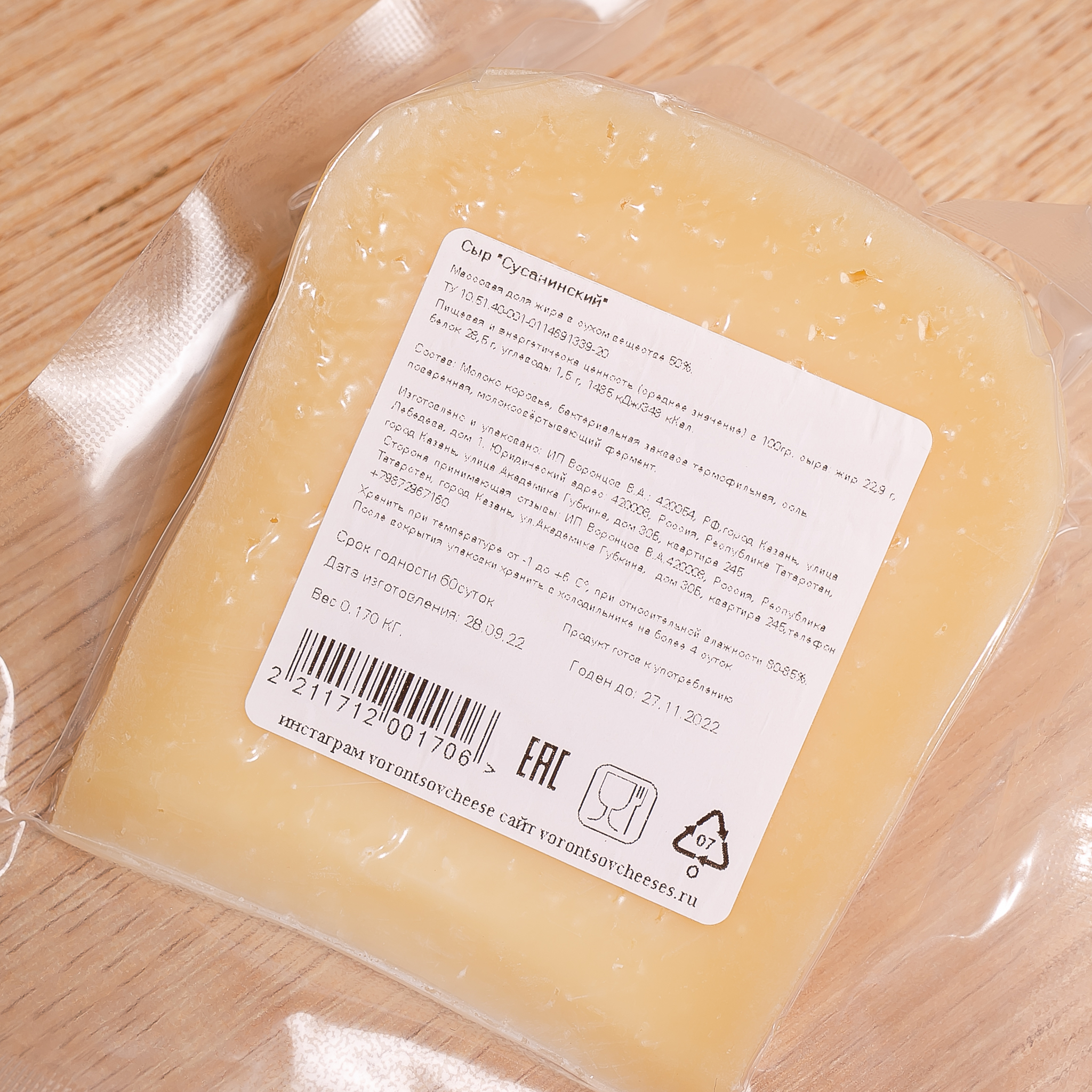 Полутвердый сыр по рецепту еще советских времен. Вкус сливочный, в меру терпкий, с небольшой кислинкой. Структура пластичная
